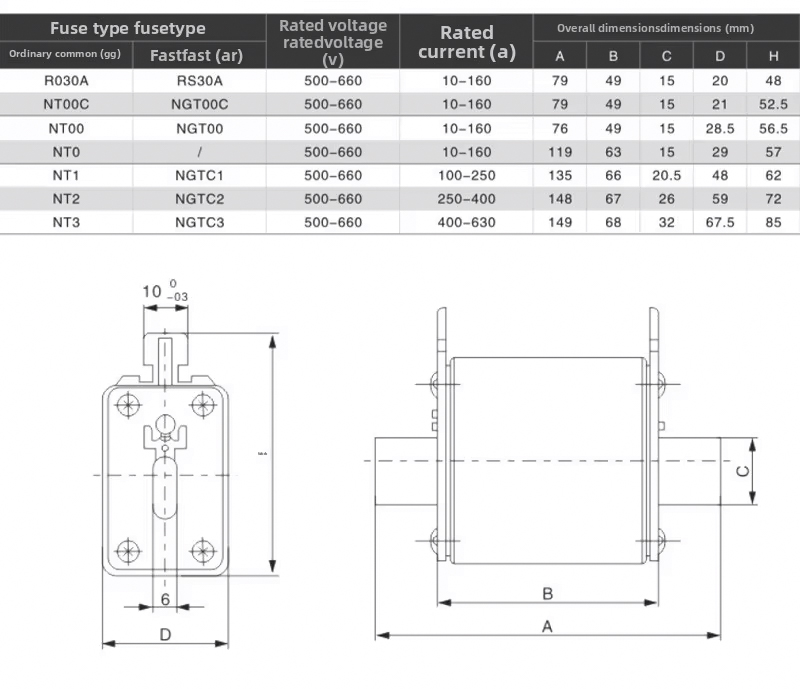 NT/NH series square ceramic fuses are commonly used in industrial electrical equipment, power systems and electronic equipment to protect circuits from overloads and short circuits.