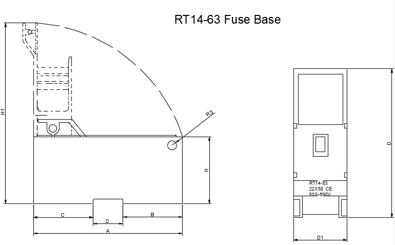Hot Tags: Wholesale 22x58 RT14-63 enclosed rail fuse base