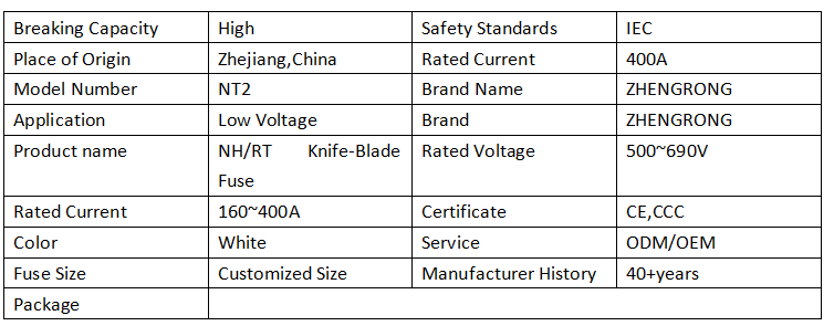 ZHENGRONG NT2 315A 500V Fuse square ceramic fuses are commonly used in industrial electrical equipment, power systems and electronic equipment to protect circuits from overloads and short circuits.